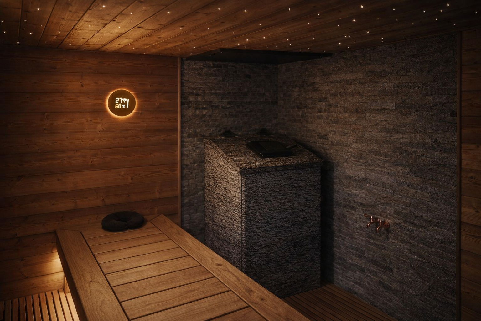 Рассчитать сауну →Парогенератор, гидроизоляция, уклоны/сливы, облицовка, вентиляция.